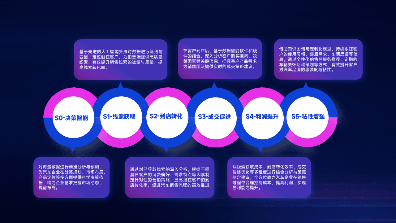 通过拓宽潜在客户来源、、优化线索分配并提高到店转化率,,,,以增强销售效率。。同时,,,利用线索数据不断优化分析模型,,有效提升转化率,,,,扩大营销影响力。。。